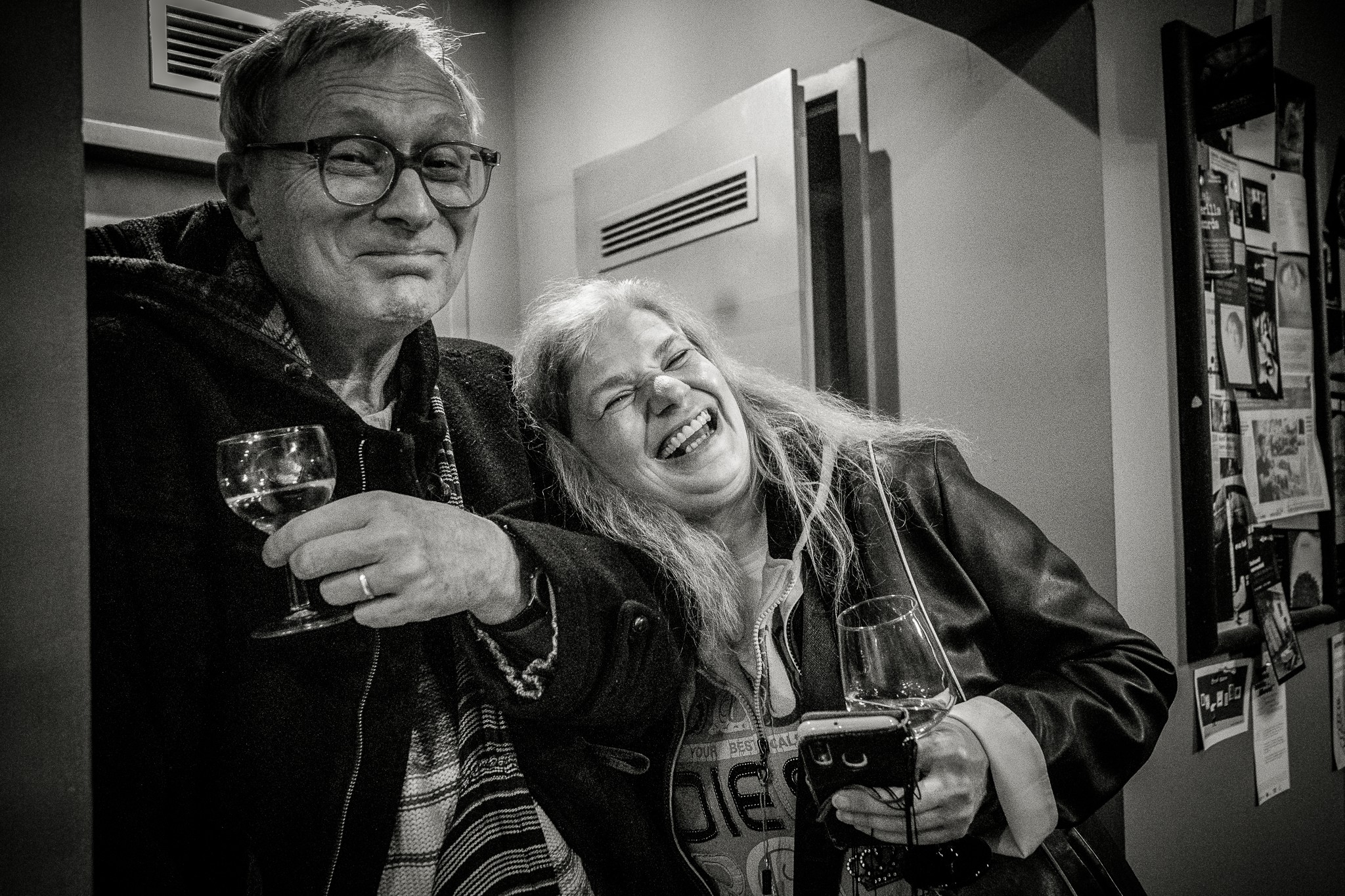 I like to photograph events related to the Czech cultural underground and political dissent. On the one hand, these groups largely overlap, which I consider a specific phenomenon on a global scale, and on the other hand, it usually turns into a great party. These are actually photos from two events: the exhibition opening and the closing party. The guest of the first of them was, among others, the bassist of the legendary Plastic People, Eva Turnova. The guest of second was saxophonist of the same band, Vrata Brabenec.