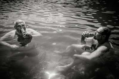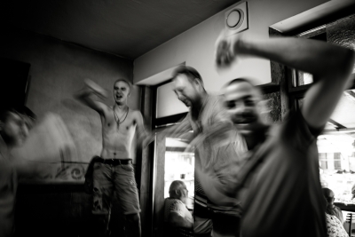 A few years ago, my friend Radovan decided to search for his Serbian half of his identity, left the quiet intellectual niveau of Prague and bought a dilapidated house in a secluded spot in the Serbian mountains. You can easily recognize him in the photos, he looks more and more like an Orthodox pop. Coincidentally, his solitude is in the hills above the town of Guča. It makes a visit to the festival a little more authentic, because apart from listening to the trumpets blowing and eating grilled meat and cabbage, it's not without visits to all his relatives and local friends. That means lots of homemade fruit spirits, more grilled meat and more booze. We spend the hot part of the day cooling our hangovers in the nearby reservoir, then more booze and a concert in the evening. And so it goes on and on for days.